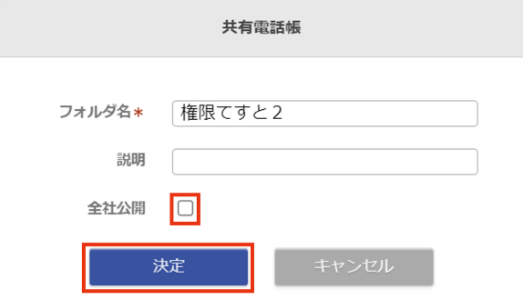 ④ 「全社公開」のチェックを外し、「決定」をクリック
